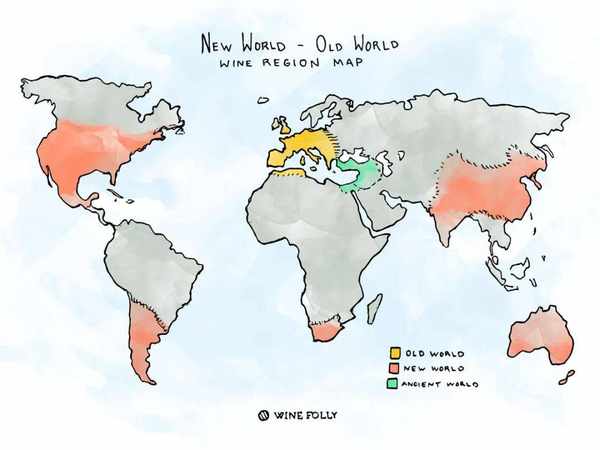 新世界:新世界是指那些借用旧世界酿酒国家的传统来开创自身酿酒技术的国家。新世界与旧世界的区别更多在酿酒工艺上,因为新世界更愿意引入现代新技术,允许使用不同的技术、不同的方法去酿造葡萄酒,因此新世界葡萄酒的味道更佳柔顺,更容易入口。新世界以美国、澳大利亚、中国为代表,还有加拿大、南非、智利、阿根廷、新西兰等,这些国家生产的葡萄酒被称为新世界葡萄酒。