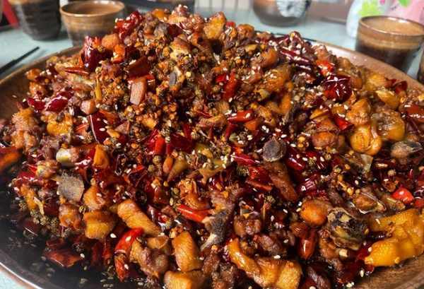 首先鸡肉必须是土公鸡,辣椒也是要上等的,记入在做之前也是要经过控制好的油温炸一遍,而且要掌握的外焦里酥的,让加上各种过油的管理局和其他调料,真的是香味十足,咸甜适口。