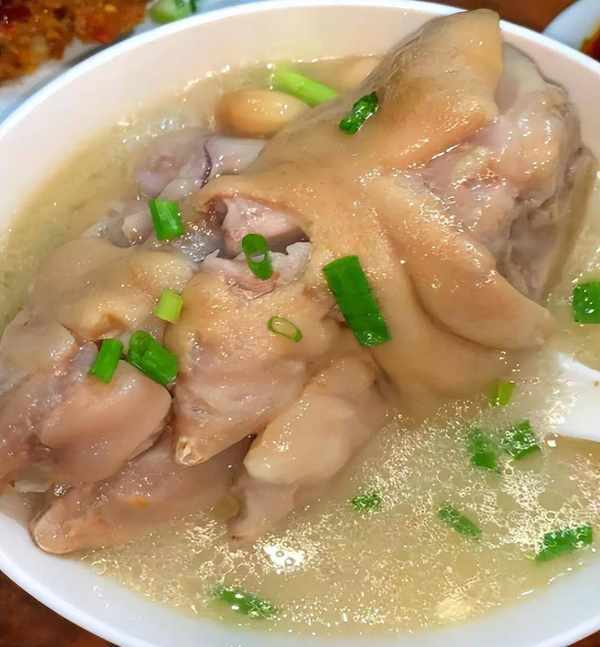 最出名的蹄花汤实属是四川泸州的,但时重庆在四川的影响下,也有了专属自己的渝味蹄花汤。它的主要原料就是猪蹄,白芸豆再加入其他辅助材料,炖煮半个小时左右,加入盐和葱花即可。炖好的猪蹄的皮和肉若即若离,而且弹十足,真的的满满的胶原蛋白,不仅可以享受美食,还可以美容养颜。