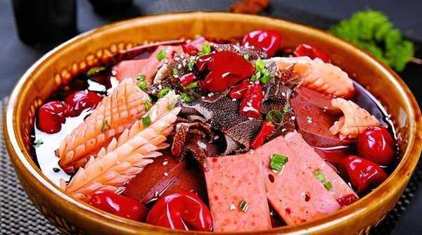 血旺一般是各种的内脏,肚等等的食材一锅一起炖制而成的。在此炖制的过程中还要加入各种的川派的辣椒,花椒等各种重口味的调料品,在这些川派的调料品的点缀和增味上,血旺更加香气怡人,令人看了就很有食欲。