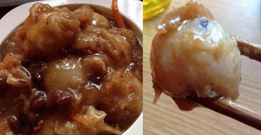 第四个是红烧汤圆,本来汤圆只能接受甜的,别人吃咸的都觉得很奇怪,结果学校食堂又刷黑暗料理届的新高度,汤圆红烧之后,会是什么味道呢?