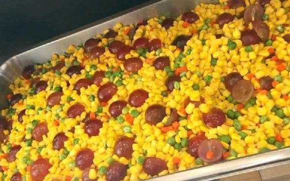第一个是玉米炒葡萄,这糟蹋的不只是葡萄啊,玉米、青豆的味道也很难言,正常的炒个玉米难道不好吗?