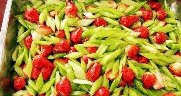 第三个是草莓炒芹菜,学校食堂的师傅们,可能都喜欢用水果做菜吧~有的学校食堂还有用草莓做炒饭的,也是脑洞大开。