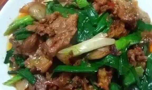 7.加入蒜苗,加点鸡精调味炒匀,即可装盘。