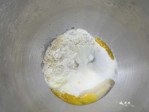 1,除黄油和盐意之外的食材混合,揉面,揉面的时候,尽量借助厨师机,特别是新手朋友,不要尝试用手揉面,做面包的面团水分比较大,掌握不到技巧就很容易粘手。