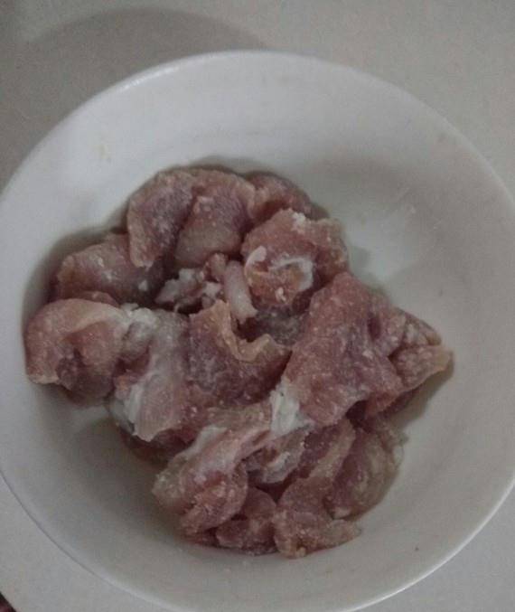 3.肉加一点点盐,薄薄一层淀粉,搅拌