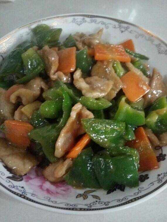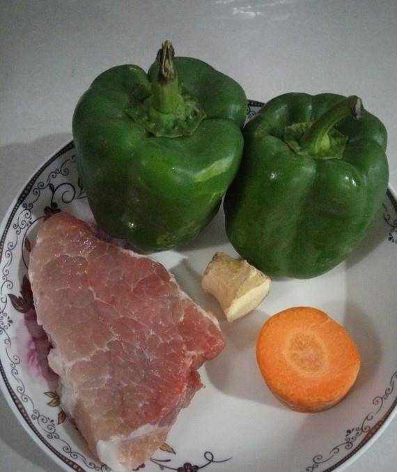 猪肉(瘦) 250克、柿子椒 2个、胡萝卜 小块、姜 小块