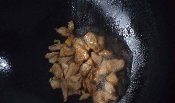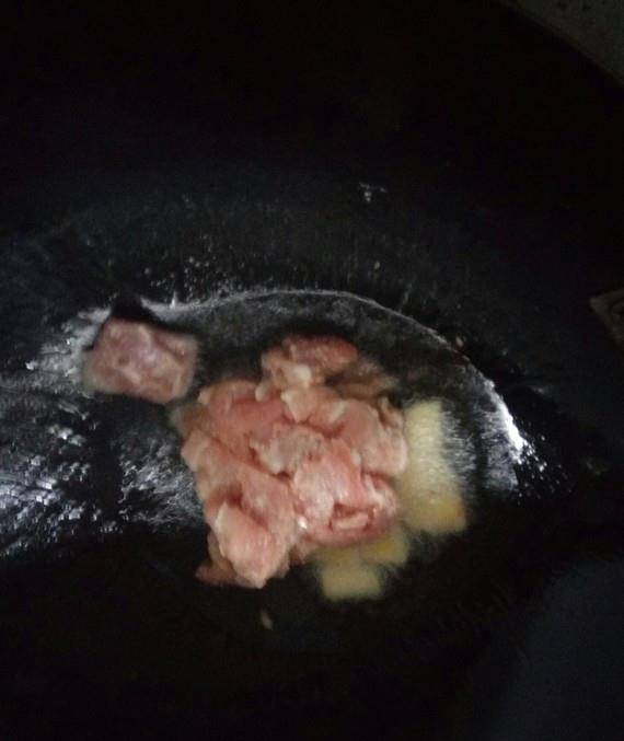 6.肉打散,炒至脱生,后下一点点酱油,一点点醋,加半碗水继续煮一分钟