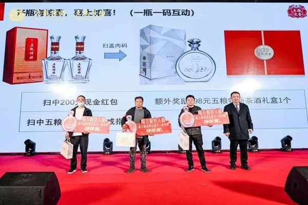 为了展示五粮特曲一瓶一码数字赋能的魅力,五粮浓香公司让与会人士现场打开身边的五粮特曲金彩版,现场扫码即可领取奖品,中奖率高达99%以上。果然,通过扫码,大部分幸运的与会人士都领到了相应的奖品,一部分更加幸运的与会人士还领到了五粮液施华洛世奇(戒指款)及高档手机等心动大奖。