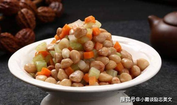 放入花生、芹菜、胡萝卜,撒上适量的盐、香油、糖,搅拌均匀即可上桌。