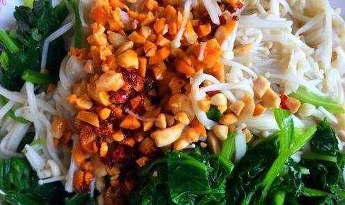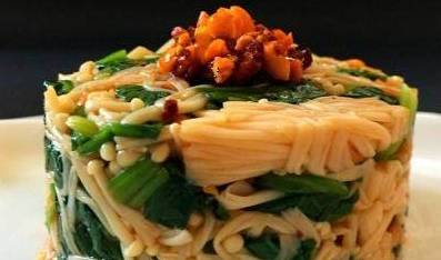 这个做法还可以做成麻酱菠菜,摆好造型的菠菜淋上一勺芝麻酱就可以了。还可以把金针菇煮熟,和菠菜拌在一起,淋上辣椒油也是一道美味。