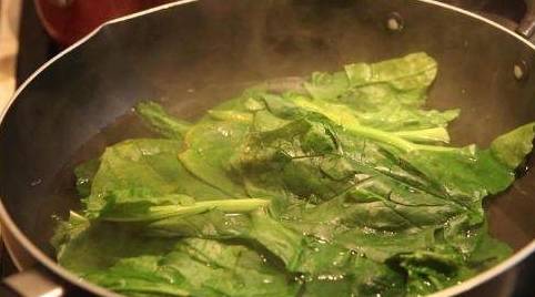 做法:1、菠菜用水冲干净。2、放在开水中快速的焯一下。3、捞出的菠菜放凉用手捏干净水。
