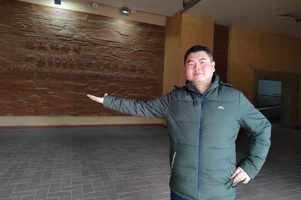 在画面之中,这座“大房子”位于小沟南侧,旁边紧邻好几座小型房屋,包括圆形房屋和方形房屋。其中,只有一座方形房屋,紧邻一座圆形房屋,跟大厅西侧入口内的房屋遗址位置一致。站在此地,向南望去,较高的平台就是“大房子”遗址所在地。如今,这里空空荡荡,什么也看不到,墙壁上悬挂着两幅油画。