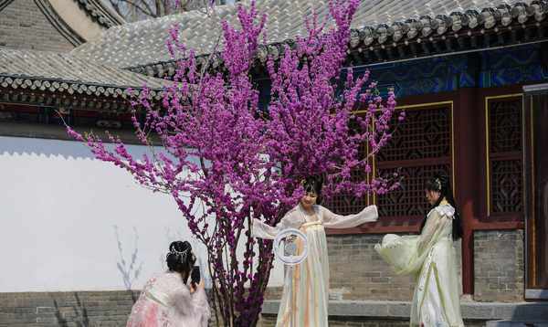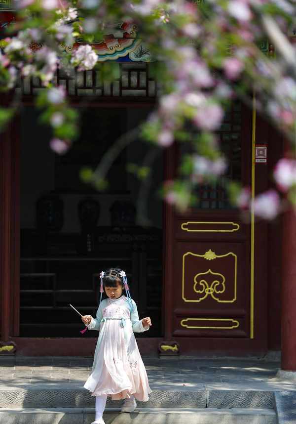 这里还有古装游园的活动,不少游客身着汉服或者红楼服饰,在这古今交融的美景中翩翩起舞,感受浓浓的古城春色。