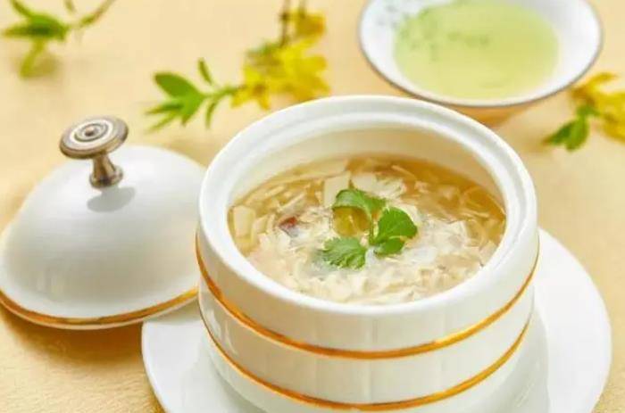 之后它还辅以鸡汤,火腿,虾仁熬制出满满的浓汤,再把干丝放入其中吸收汤汁的鲜味,然后单独摆盘呈现,就形成了这道美食。