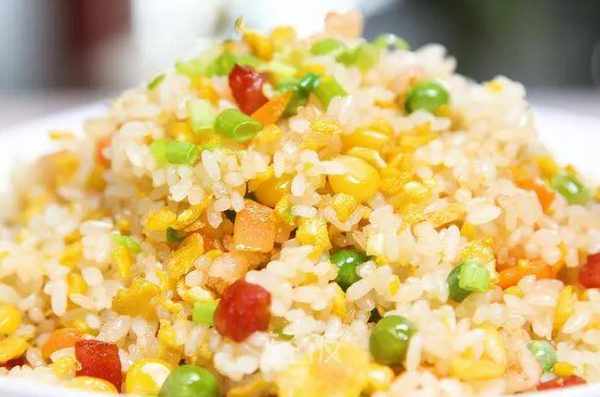 一般的扬州炒饭皆以火腿,虾仁,青豆,胡萝卜丁,鸡蛋这五样搭配,加上隔夜米饭的鲜嫩口感,一饭上桌,光盘行动。