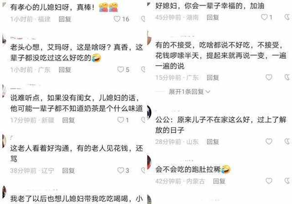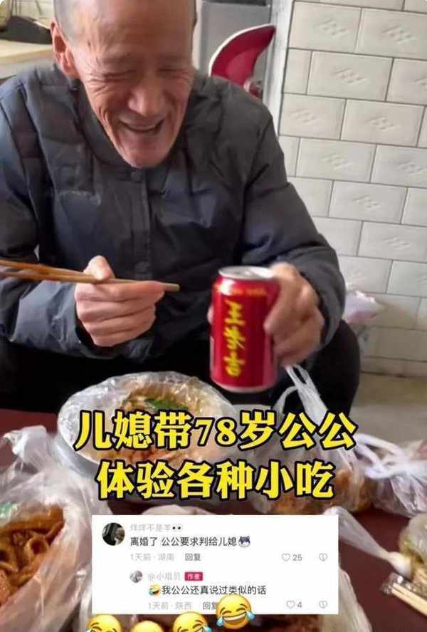 网友也是高兴的调侃到:看看吧,还得是闺女,瞧那混小子。那个混小子(儿子)没事也不会带着你一起去吃香得喝辣德。公公还真的说过:要是离婚了,要求把公公判给儿媳。