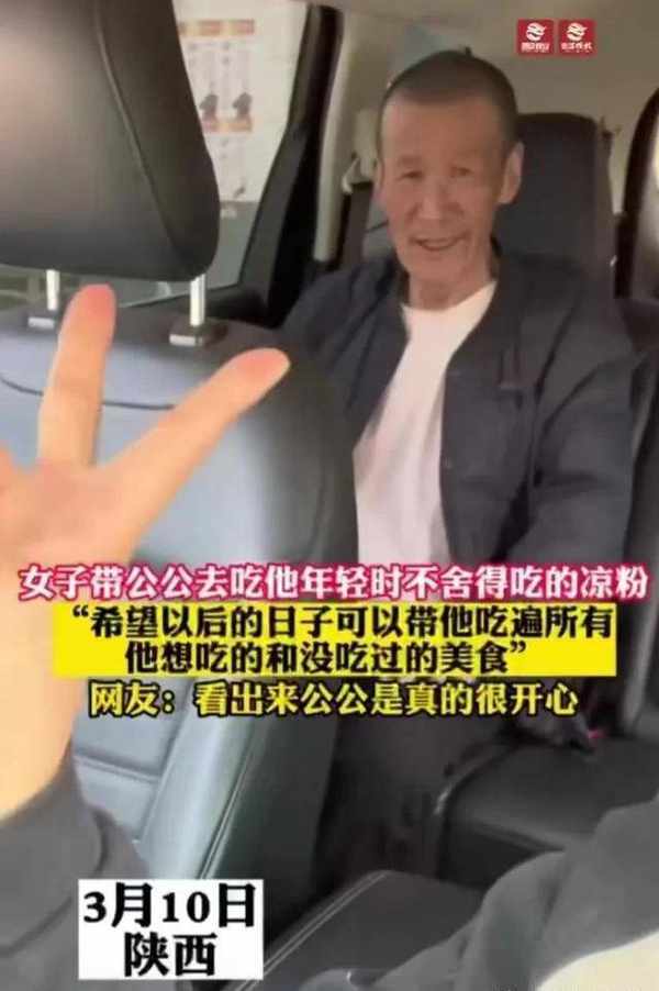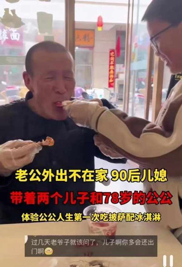 “俗话说,老小孩、小小孩。”上了年岁,老人性格像孩子,该女子对待公公就像照顾自己的孩子一样,公公也是每天高兴的“乐不思蜀”。只要有时间就带着公公和孩子一起出去体验小吃,吃一些公公以前不舍得吃的小吃,喝一些公公以前没喝过的“饮料奶茶”。