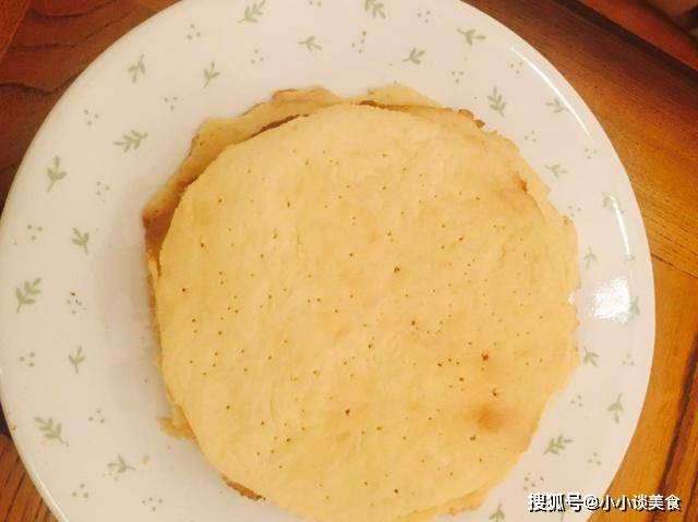 2、然后用盘子做一个圆饼,把盘子扣在面团上,用牙签沿着盘子在面团周围画圈,去掉多余的部分,在圆饼上面打洞。利于排气。平底锅烧热,将底放入饼盘中,中小火炸3分钟左右,炸至一面发黄,翻面,继续炸3分钟,炸至两面金黄酥脆,然后删除;把所有的块揉在一起,擀成薄片,放入锅中煎至两面金黄酥脆。
