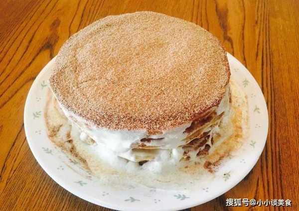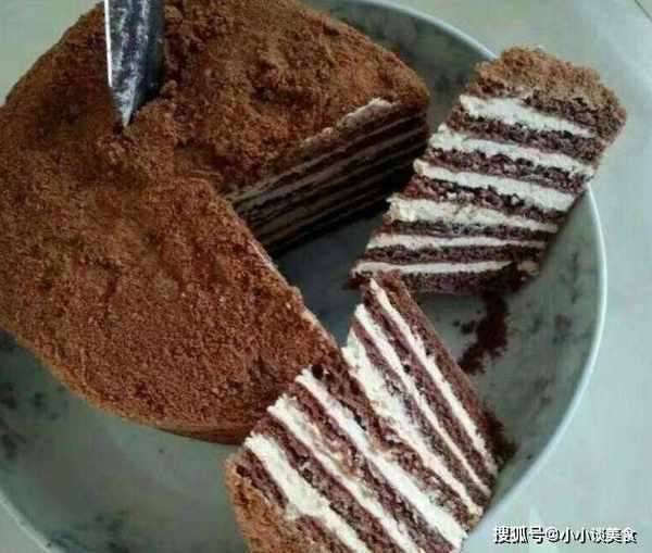 4.取一块饼干,抹一层奶油,撒上适量的饼干屑,再放一块饼干,抹一层奶油,撒上饼干屑,依次类推直到一切就绪,最后撒上。在边上涂奶油,在边缘撒上饼干屑,然后放入冰箱冷藏2小时以软化饼干,然后再食用。