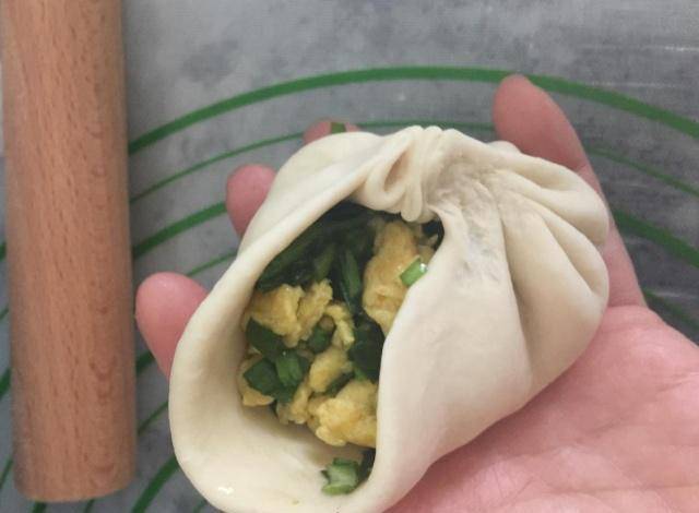 第三步:把做好的面团拿到案板上,提前在案板上撒少许干面粉,以免粘连,不要揉面团,直接将面团揉成长条,切成大小均匀的小块,压紧复试后用手摊平,包入适量馅料,拧虎口收紧,依次做好所有的饼胚。
