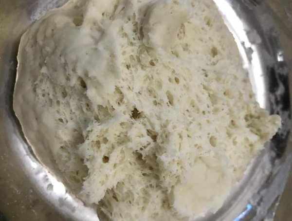 第一步:将面粉放入盆中,加入酵母拌匀,然后慢慢加入温水,一边倒一边搅拌,搅拌成可以成球的干面团,朝一个方向用力搅拌均匀,摊开一层表面均匀抹油,让面团变软,然后盖上一层保鲜膜,密封发酵至两倍大。