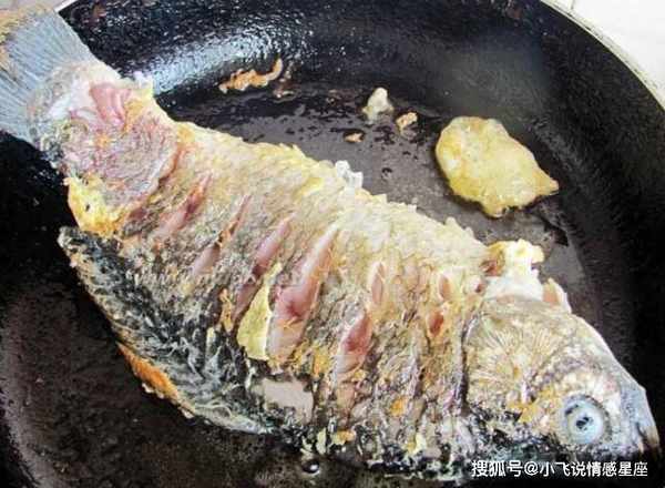 2、炸鱼的时候,先把鱼头放入热油中炸一会,因为鱼头比较难炸,炸鱼的油要够,要够热,这样炸出来的鱼才能出锅。香脆又香脆。煎的过程中不要翻动鱼,这样会影响形状。