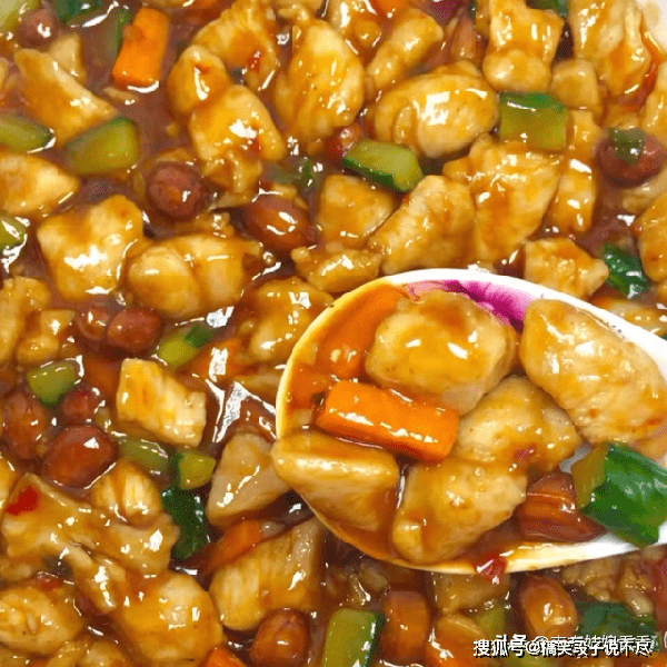 5、这个时候倒入提前调好的料汁、花生米,大火翻炒收汁后即可出锅。