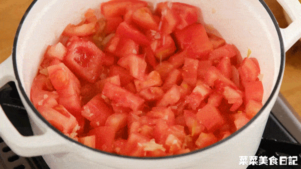 锅里喷点橄榄油,番茄切小块扔进去炒出汁,然后就可以炒、煮、焖万物啦!