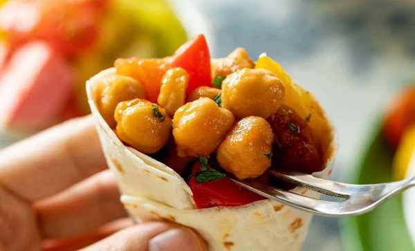 将鹰嘴豆和茄汁一同卷起,嗷呜一大口,香脆、沙绵、稠滑,三重口感在嘴里合奏,满足得很~