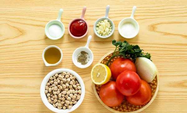 干鹰嘴豆150g 番茄500g 番茄酱2大勺 蒜末1大勺 洋葱半个