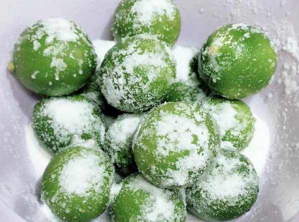 第一步:先用盐擦石灰,揉一会,然后用清水冲洗干净,吸干水分,可以直接用纸巾擦干,一定要让石灰干透。