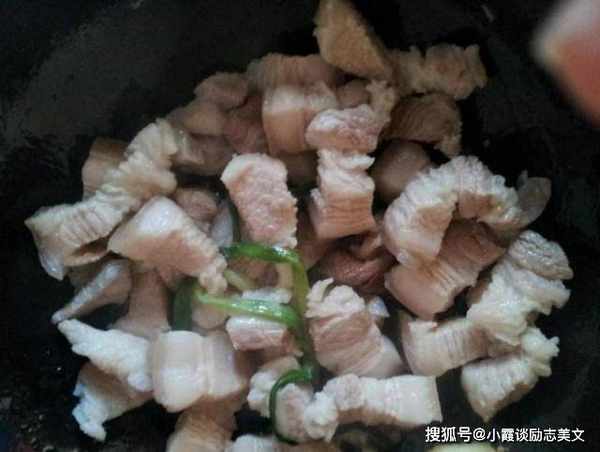 1、肚皮的肥瘦比例最好选择3:7,味道最好,然后将肚皮切成麻将大小的块,下锅冷水煮熟,加入适量的香葱,之后大火煮,继续煮5分钟。取出,清洗干净,沥干水分备用。