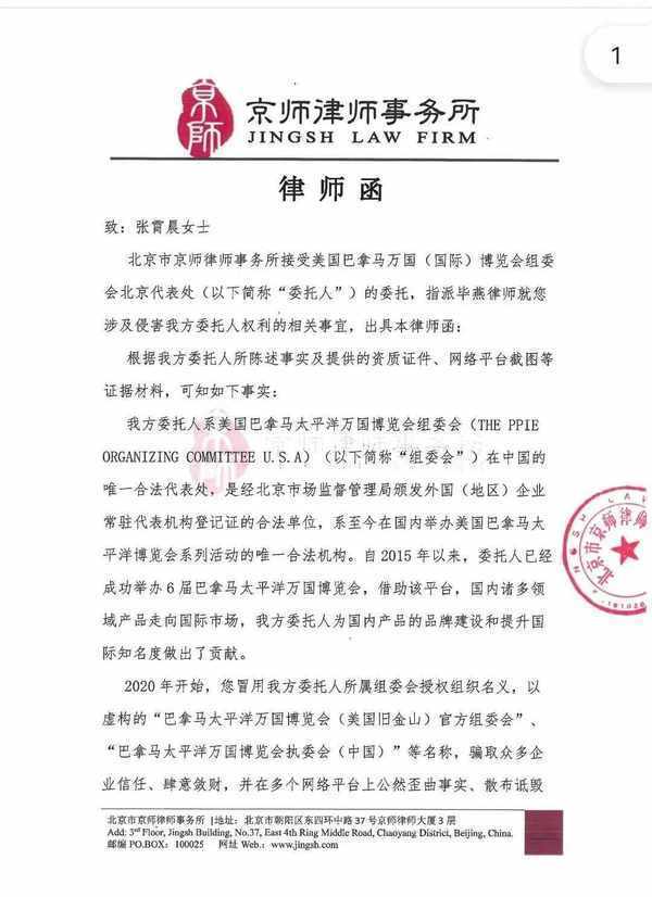 3月17日,“巴拿马太平洋万国博览会执委会”发出打假声明,称“美国巴拿马万国博览会北京代表处”罔顾巴拿马太平洋万国(国际)博览会在历史上仅于1915年举办过一届的基本事实,虚构已经连续举办106届。