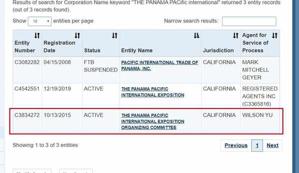 据公开信息显示,余某标在境外注册的名称为The Panama Pacific International Exposition Organizing Committee【中文译名:巴拿马万国(国际)博览会组委会】,实际上与1915年The Panama Pacific International Exposition【中文译名:巴拿马太平洋万国(国际)博览会】名称完全不相符合。