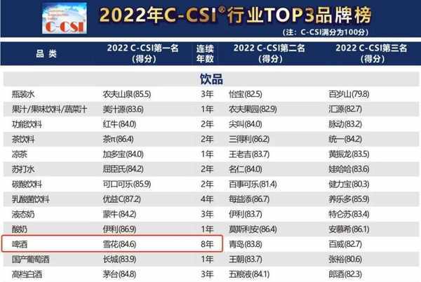 消费需求日益精细化和网格化,小众消费需求不断涌现,品牌在顾客满意度上持续领跑的难度也越来越大,雪花啤酒8年蝉联C-CSI榜单啤酒品类第一名的成绩格外难得。