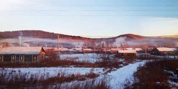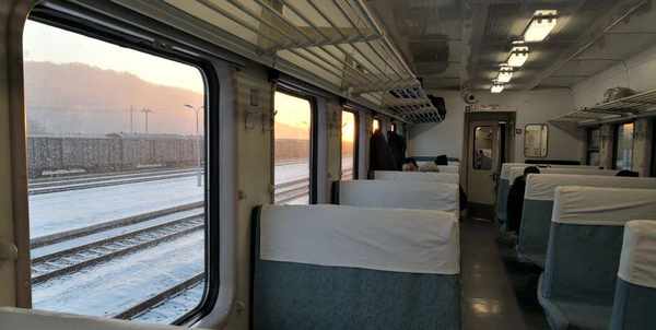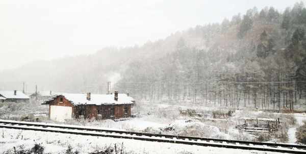 不知道从什么时候起,坐绿皮火车穿越林海成了旅游热门体验项目。对于小兴安岭几百公里的范围,也只有借助火车才能快速浏览其全貌。因此我特地选了一趟清晨从伊春发车返回哈尔滨的绿皮火车,可以穿越小兴安岭的西南区域。天气依旧寒冷但是阳光明媚,绿皮火车内乘客很少,逢站必停,非常适合沿途观景。阳光为山坡和树木都披上了暖色调,与白雪覆盖的原野形成鲜明反差,民居上的袅袅炊烟在山谷中停留集聚,增添了一种虚幻缥缈的感觉,这正是我梦中的东北雪景。本来天气一直晴朗,却在中途一小段路程,突然风雪交加,漫天雪花飞舞,能见度急剧下降,诡异得让人不敢相信,也算是旅途的一个插曲。