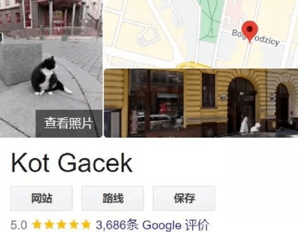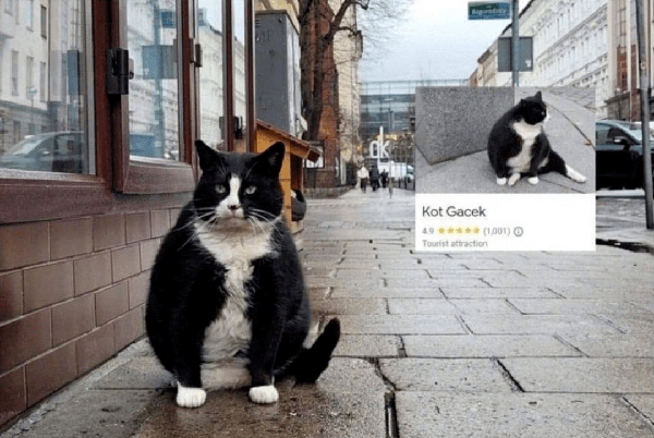 没错,这个满分好评的景点就是一只猫,一只叫Gacek的奶牛猫。