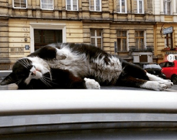 遇到喜欢的车,就跳上去休息休息,看看街上来来往往的两脚兽。