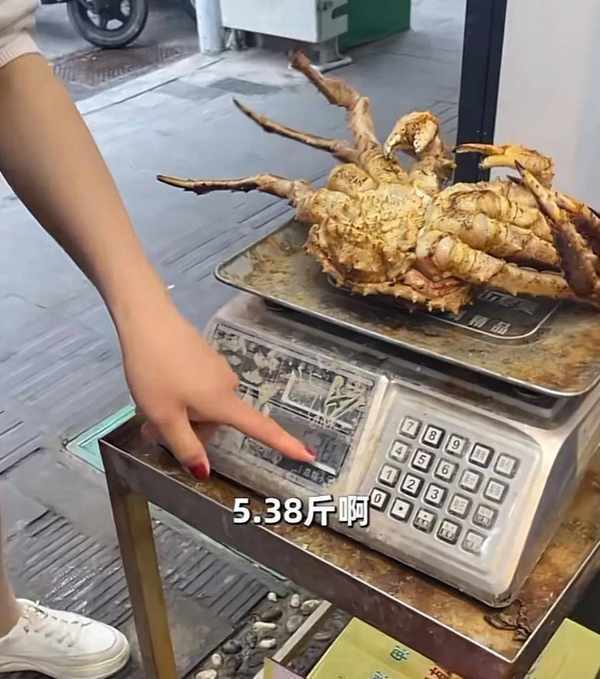 网友去了另外一家海鲜店,螃蟹活动价298元/斤,网友随便挑了一只,店家称出来5.38斤。