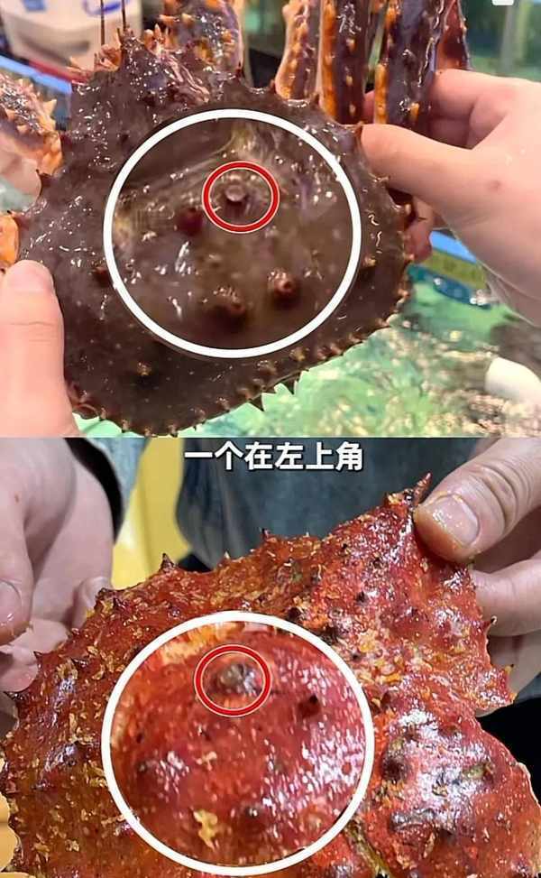 很明显商家偷梁换柱了,如果商家只是换了一只小的帝王蟹,至少顾客吃的是新鲜食材,如果是死的那可真的会被恶心到。