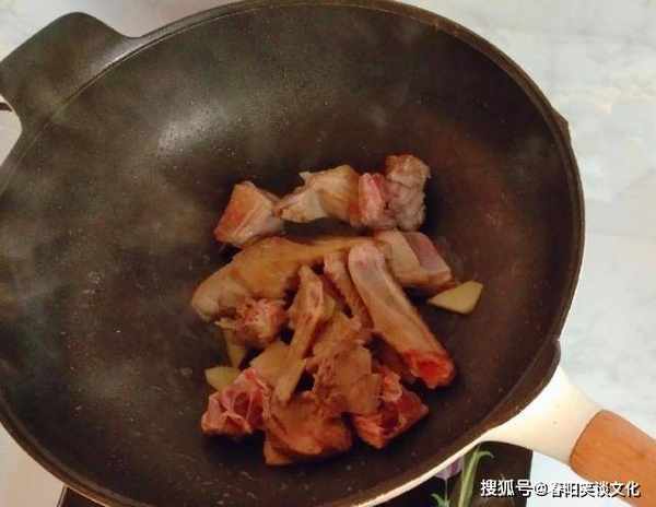 第一步:将鸭子清洗干净,切成合适的大小,用流水冲洗干净;山药去皮切块,用清水浸泡,防止氧化变黑;枸杞洗净;姜片;然后把锅烧热,我们把鸭肉和姜片放进锅里炒香。这一步是为了去除鸭肉的腥味。