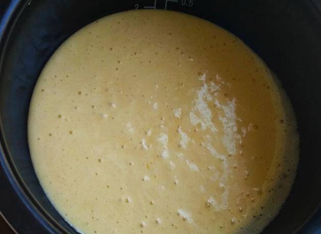 5、混合好的溶液倒入电饭煲时,一定要摇晃一下,因为这样可以去除里面的气泡,做出来的蛋糕还是松软蓬松的。