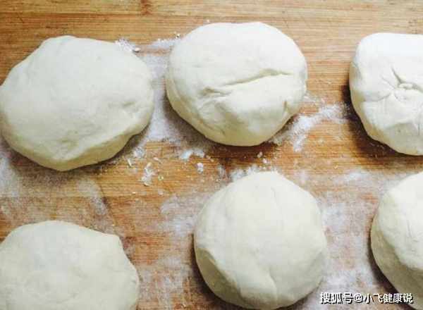 第四步:将发酵好的面团揉成长条,切成大块,擀成圆形面团。