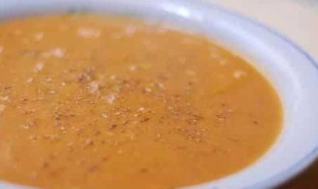 先起镬放油(以橄榄油为最好,没有的话花生油亦可),将虾炒至变红后盛起,再起镬放油将鲩鱼腩煎香后溅酒加入滚水煮至汤呈奶白色时将虾、土豆、红萝卜、洋葱、番茄加入,再放入适量的香草煮半个小时左右,将所有的材料捞起来,虾去头去壳、鱼腩将骨挑出后,把所有材料放入搅拌机绞碎后倒出,将锅烧至微热,将火收小后放牛油,待牛油溶解后再倒入适量的面粉炒香(面粉的分量很关键,多了汤会变成浆糊,少了不成汤形),见面粉变黄马上将原汤、番茄酱和绞碎的材料倒入,搅拌均匀后放盐调味上汤碗,在面上洒上少许香草叶便成。