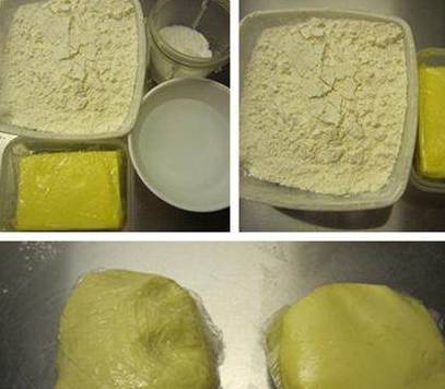 步骤:1】油皮,油酥材料分别混合揉匀,敷保鲜膜松弛30分钟
