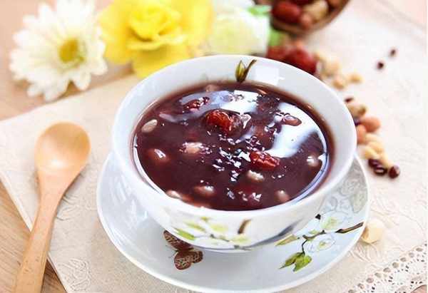 食材:紫糯米30g、红豆30g、红皮花生20g、糯米30g、山药半根、红枣3个