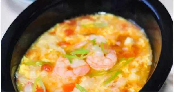 10、锅中汤沸腾后,下入面疙瘩,并迅速搅散,再次烧开后,下入虾仁;