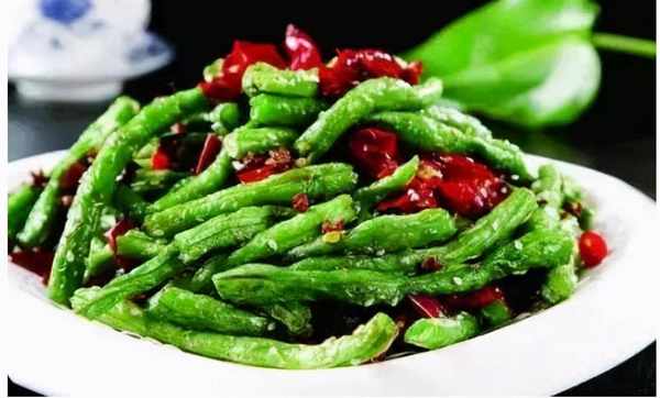 3。锅内锅内多油,平时炒2次,小豆角慢慢小火炒成虎皮,捞出,再放入豆角,再煎出油,按顺序使用。