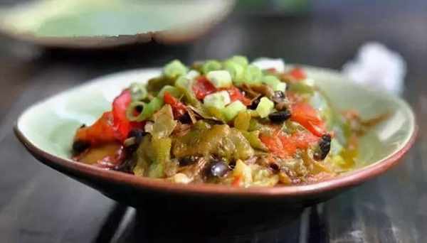 7.把辣椒泥盛到盘子里,洒上葱末即可。
